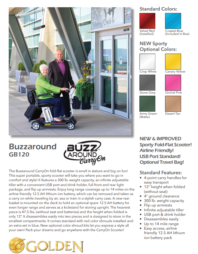 Buzzaround 4 Wheel Scooter By Golden (GB120)