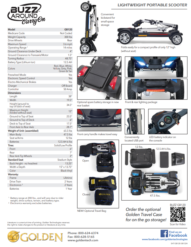 | Buzzaround 4 Wheel Scooter By Golden (GB120) remove | Buzzaround LT 3-Wheel, GB107 remove | Buzzaround 4 Wheel Scooter By Golden (GB120) remove | Companion 3-Wheel Full Size, GC340 remove | Buzzaround LT 4-Wheel, GB108 remove | Lite Rider 4-Wheel, GL141 remove | |||||||||||||||||||||||||||||||