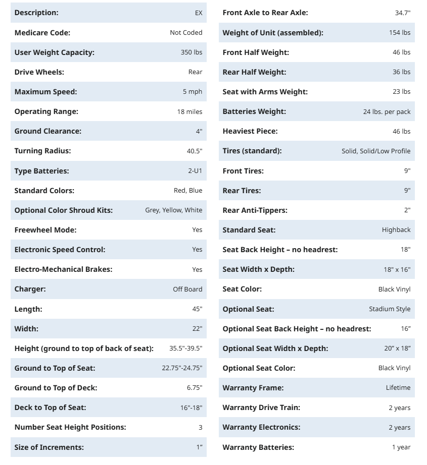 | Name | Buzzaround EX 3-Wheel, GB118 remove | Eagle remove | Buzzaround LX 4-Wheel, GB149 remove | Buzzaround LT 3-Wheel, GB107 remove | Buzzaround CarryOn HD, GB220 remove | Buzzaround XLS-HD 4-Wheel, GB124-SHZ remove | ||||||||||||||||||||||||||||||||||||